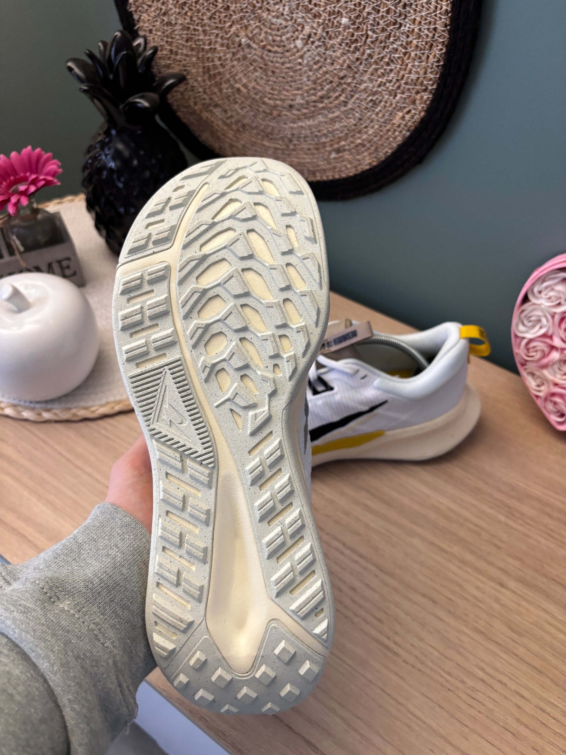 La Nike Juniper Trail 2 “White / Vivid Sulfur / Khaki / Black” (Style DM0822-101) est une sneaker inspirée du trail et pensée pour ceux qui veulent un modèle polyvalent aussi bien en ville qu’en sortie nature. Elle propose un upper en mesh et synthétique pour la respirabilité, une semelle extérieure à crampons qui offre une bonne traction et des couleurs contrastées — blanc net, touches de Vivid Sulfur jaune vif, kaki et noir — qui lui donnent un style visuel fort et actuel.